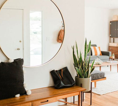 Choosing low furniture makes the room appear taller. And if you want to make it look wider, add a large mirror on the wall. Mirrors also come in handy when it comes to reflecting light. Framed mirrors add a nice touch of glam to your space.