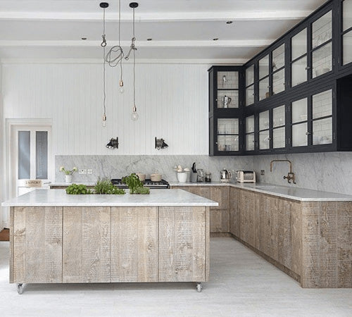 Exposed bricks, pipes and light cords are a trademark of industrial design. In urban industrial design, this usually isn’t utilised to the max as people also want a more polished, city chic look as well. The trick is to leave one or two elements exposed as a counterbalance. Then the rest can have a smoother, more finished look. In the kitchen above, the tied up light cords give just enough ‘untidiness’ to make the rest of the kitchen stand out more.