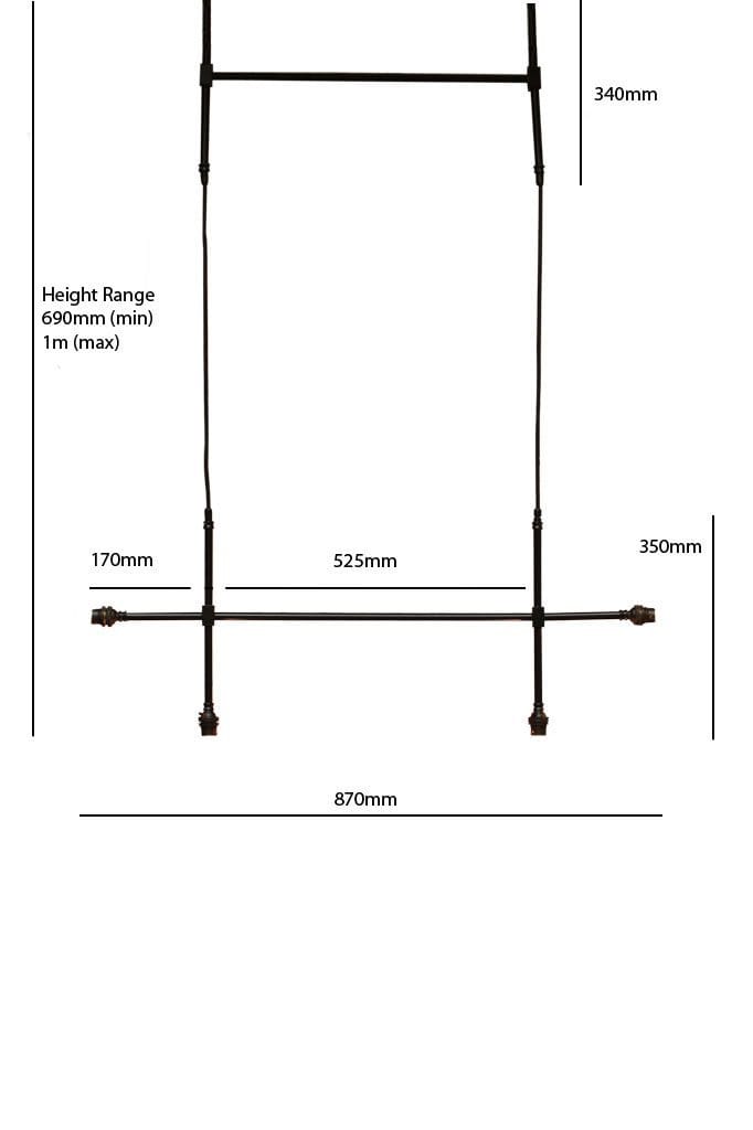 - The bottom section is 870mm wide (from horizontal lampholder to lampholder) and 350mm high (from lampholder to cord).