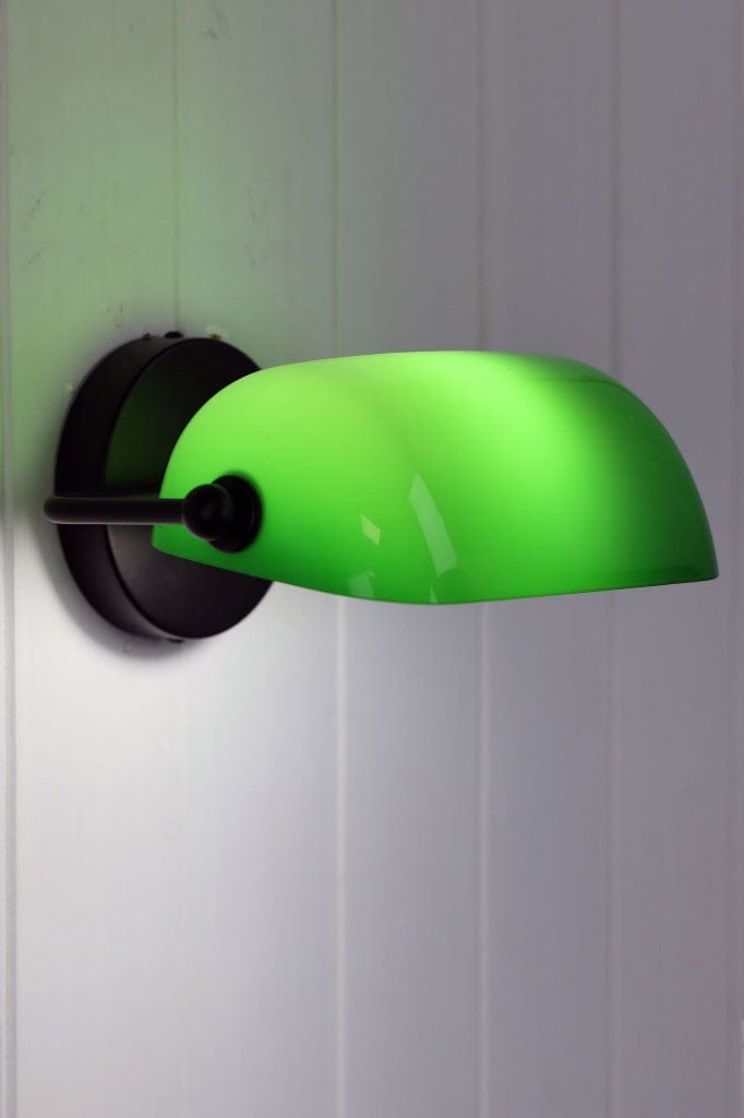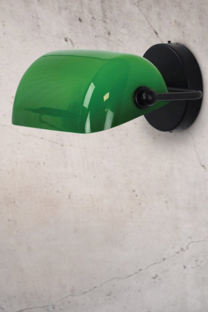 The Bankers Wall Light mimics the iconic 'Emeralite' fixtures that have been in circulation since the early 1900s. This recognisable wall light is available in traditional antique bronze or a black finish, both paired with an emerald green shade. These lights are often seen in libraries, hotel lobbies, courthouses and offices of decades past. Add traditional vintage style to your private study, reading room or hotel hallway.