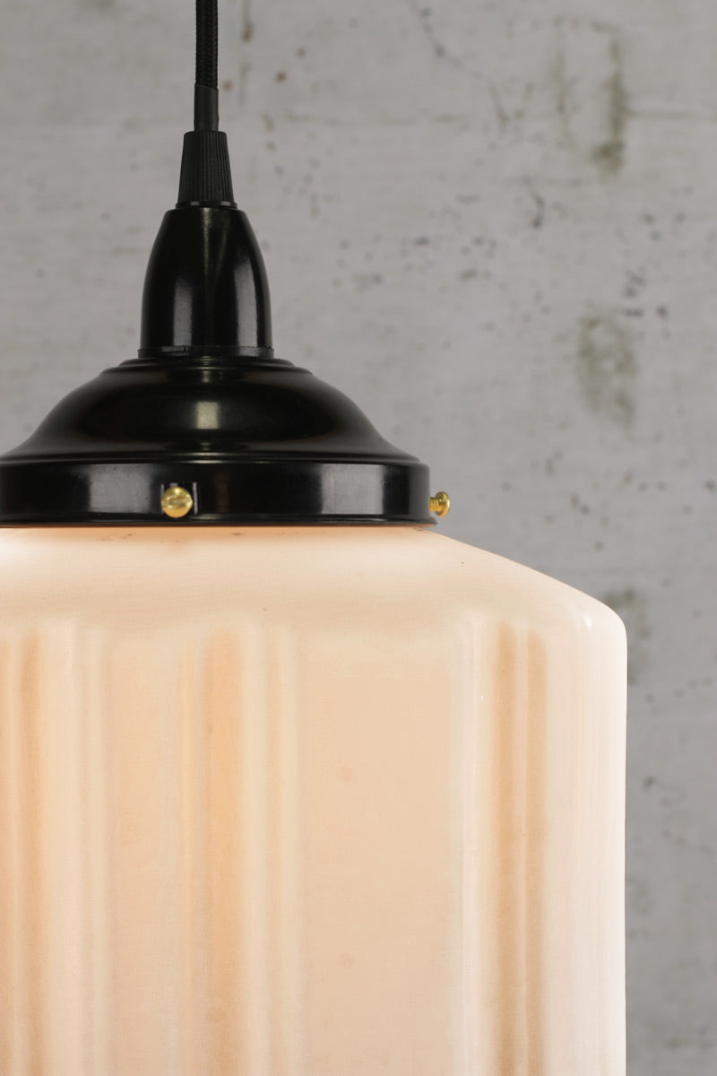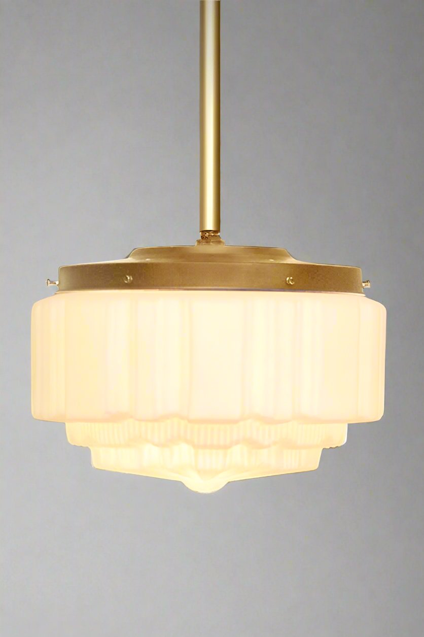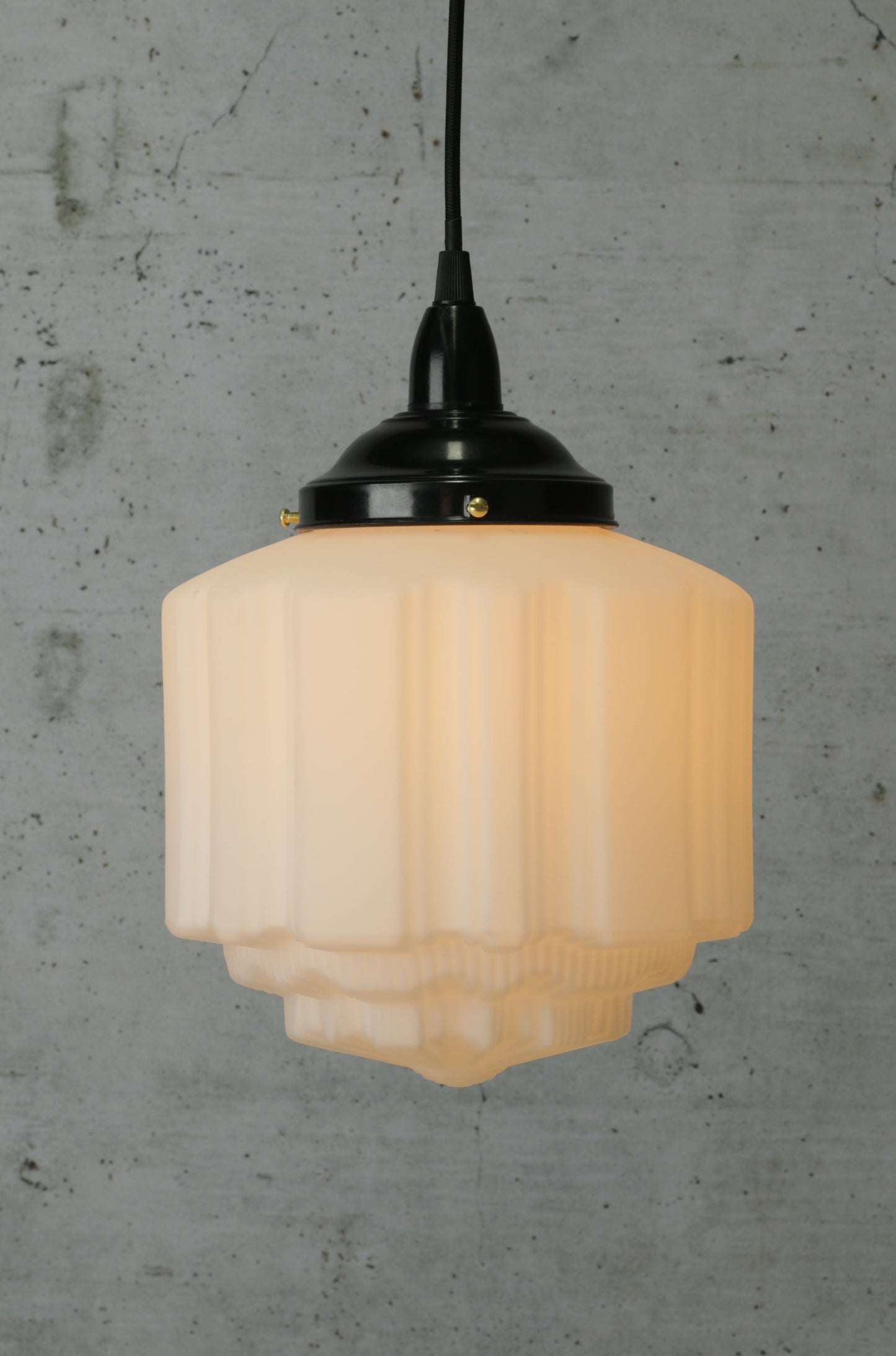 Bring art deco flair into your home or commercial fit-out with the Deco Glass Ceiling Pendant Light. Its pressed opal glass shade comes in two shade sizes and pairs with various suspension options to offer timeless appeal that can be incorporated into any contemporary or traditional room. Add period drama to your dining room, lounge or bedroom with the stunning geometric style of this pendant. Commercially, this light would add the final art deco touch to your vintage speakeasy, luxe hotel bar or intimate restaurant.