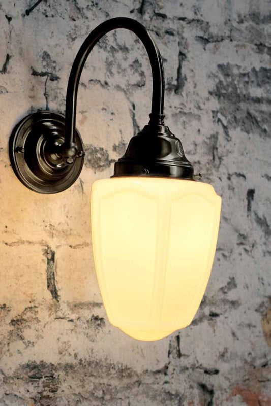 If you are considering how to infuse a touch of grandeur into your interior, our Art Deco lamps, chandeliers, and lighting fixtures are the perfect solution to upscale any space. Go big and bold with our Bonnie Gooseneck Chandelier with its softly lit opal glass. For character in smaller doses add the Charleston Black Table Lamp with its black and brass design or another option for the bedroom is the Deco Glass Floor Lamp. Moving into the bathroom the Lloyd Reeded Glass Exterior Wall Light will make a statement in design with its timeless and elegant reeded glass. For a flush mount option step back in time with the Grosvenor Glass Close to Ceiling Light with its frosted glass and traditional deco geometric lines.