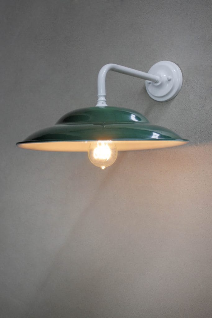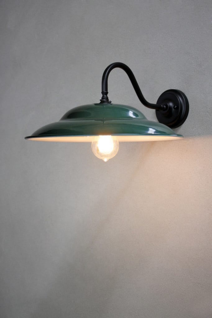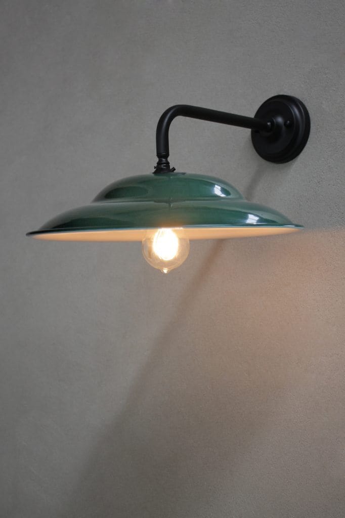 - The steel shades are available in Black enamel or painted Federation Green finishes with a white inner.