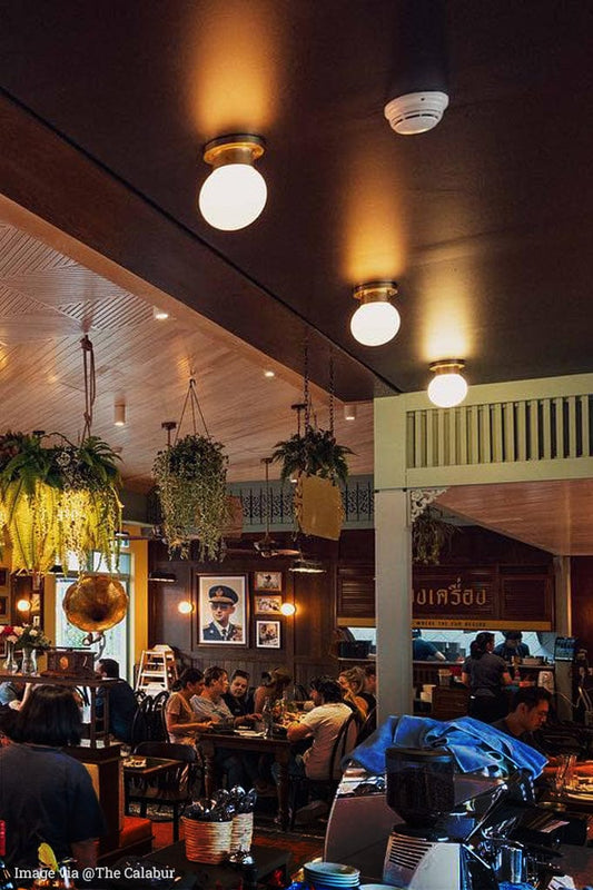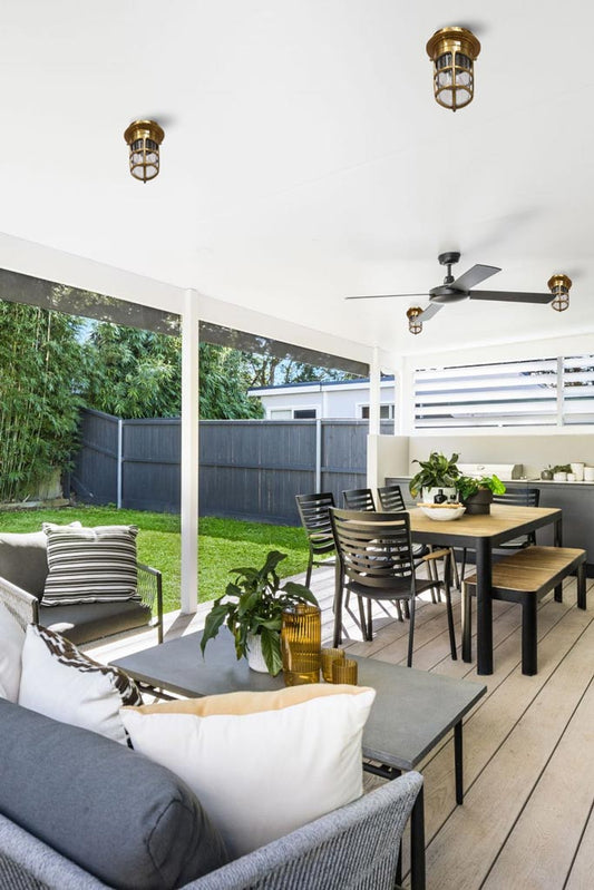As a nod to its origins, outdoor bunker lights have highly durable builds that can withstand the elements. Marine grade steel, brass and die-cast aluminium are among materials that are commonly used in their construction. Many indoor and outdoor fixtures have signature design elements such as thick rims, industrial pipe-like forms and caged frames that set these lights apart. A glass dome or lens enclosing the bulb is another common feature along with a cage guard as an added layer of protection. Sometimes, the design can be far removed from this traditional design aesthetic, as with some LED bunker lights that have a polycarbonate build and convey a modern industrial look.