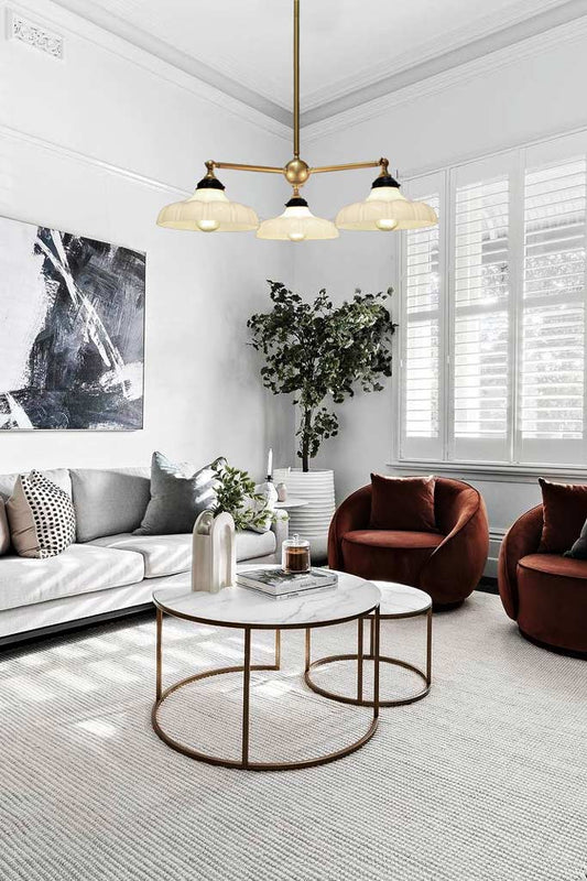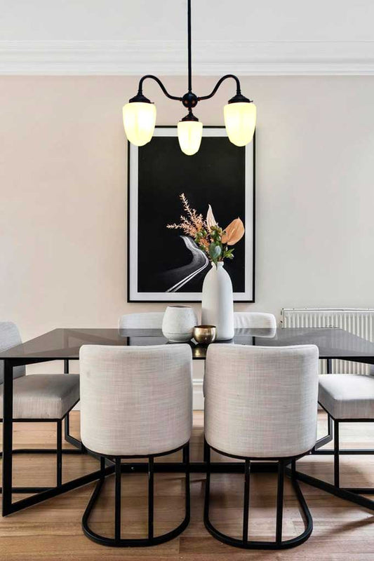 - Modern Chandeliers focus on fresh trends, innovative shapes, and creative use of materials. They often feature bold silhouettes, exposed bulbs, or mixed textures like metal and glass to create a striking centrepiece. Perfect for those who want to make a design statement, modern chandeliers bring a touch of drama and individuality to living rooms, dining areas, and open spaces.