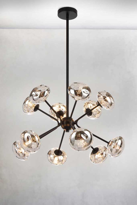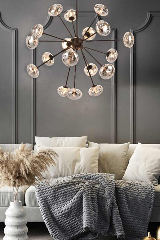 - Modern Chandeliers focus on fresh trends, innovative shapes, and creative use of materials. They often feature bold silhouettes, exposed bulbs, or mixed textures like metal and glass to create a striking centrepiece. Perfect for those who want to make a design statement, modern chandeliers bring a touch of drama and individuality to living rooms, dining areas, and open spaces.
