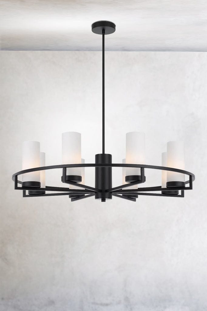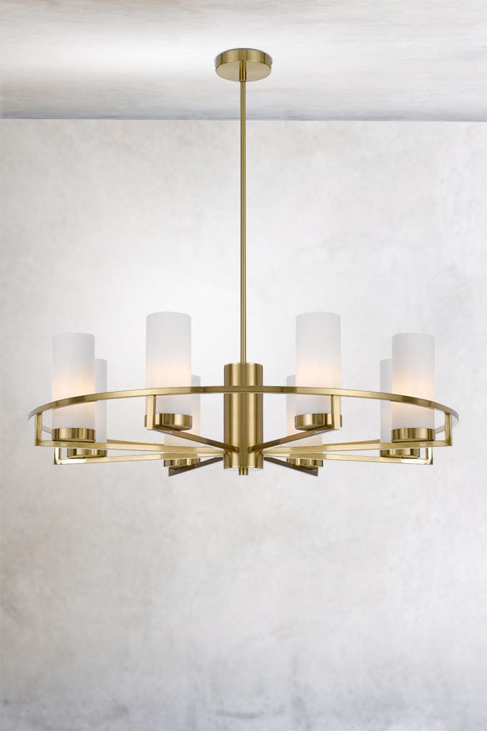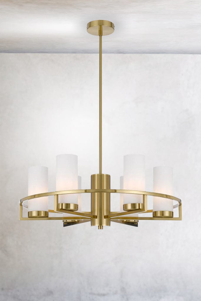 This grand style Austin Glass Chandelier will add a touch of class to your home with its radiant indoor illumination. Crafted from a robust black or gold/brass metal frame with mouth blown glass shades. Available with six or eight lights, this is a stylish and classic lighting fixture that will spice up your living room, foyer or dining area.