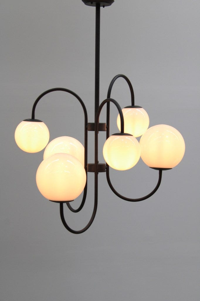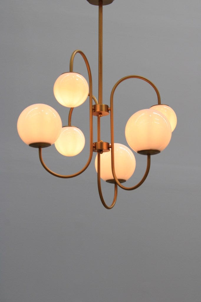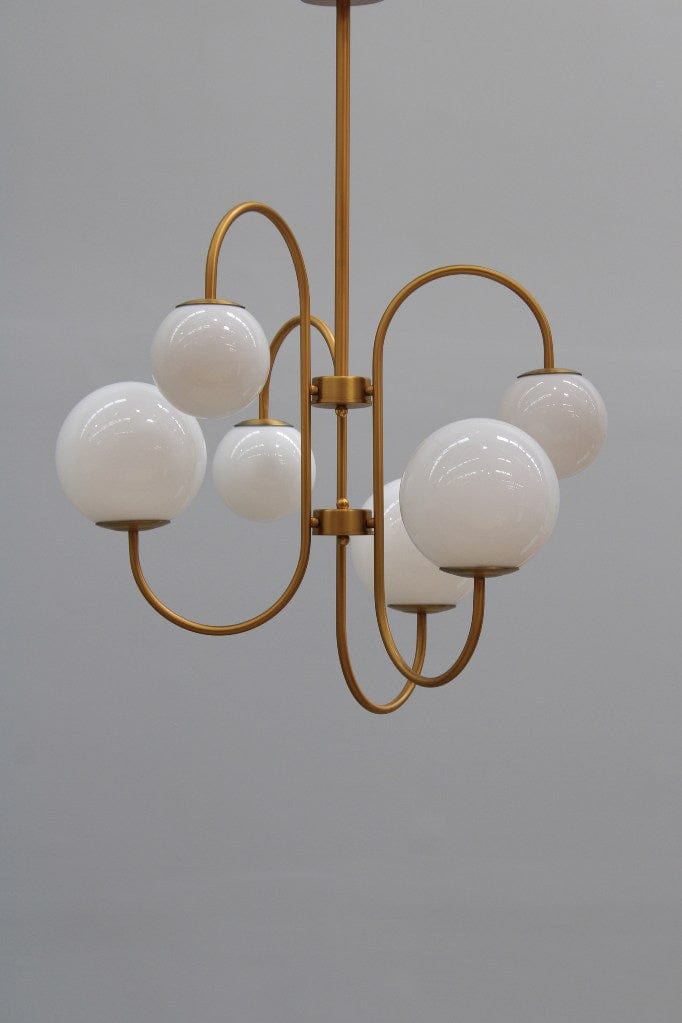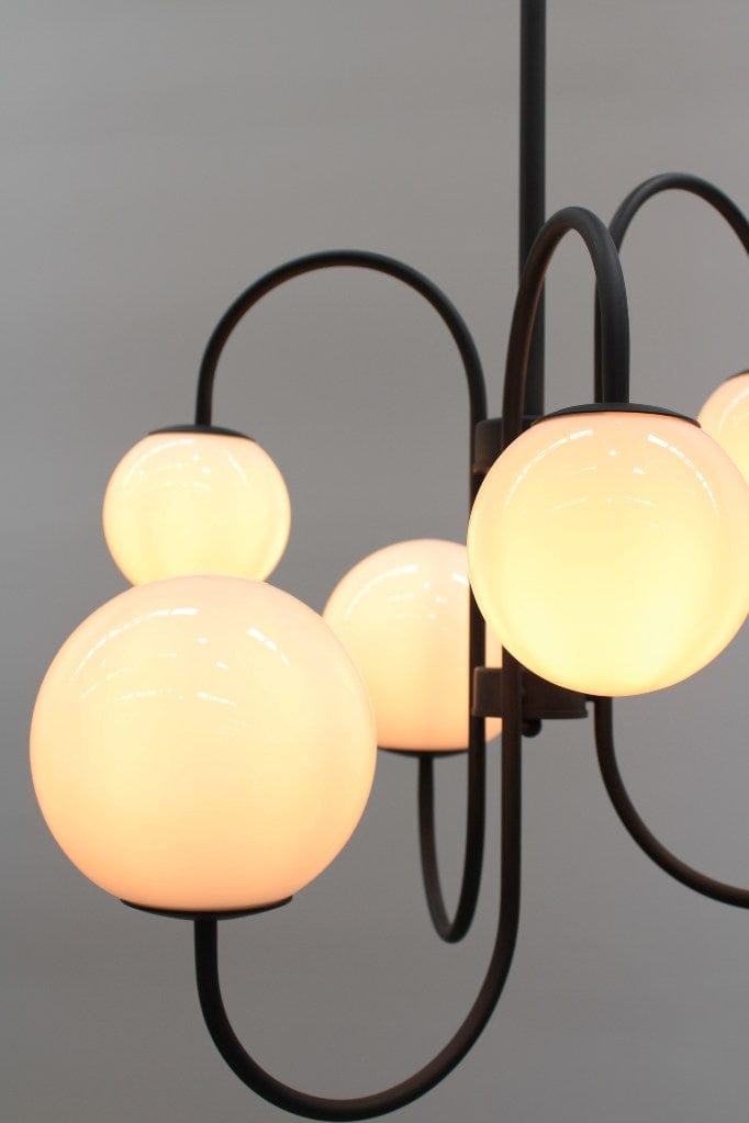 Grand yet elegant, deco-inspired yet modern, the Bonnie Gooseneck Chandelier is the perfect centrepiece for your space. This light features a distinct asymmetric design with alternating shade sizes. The six opal gloss shades diffuse the light to give your space soft and atmospheric illumination. This chandelier is perfect for adorning your entry way, hotel lobby or any space that requires a statement piece.