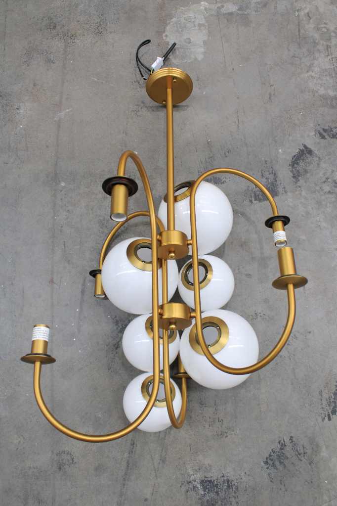 • It features 6 opal gloss, glass shades that diffuse light to produce an ambient glow.