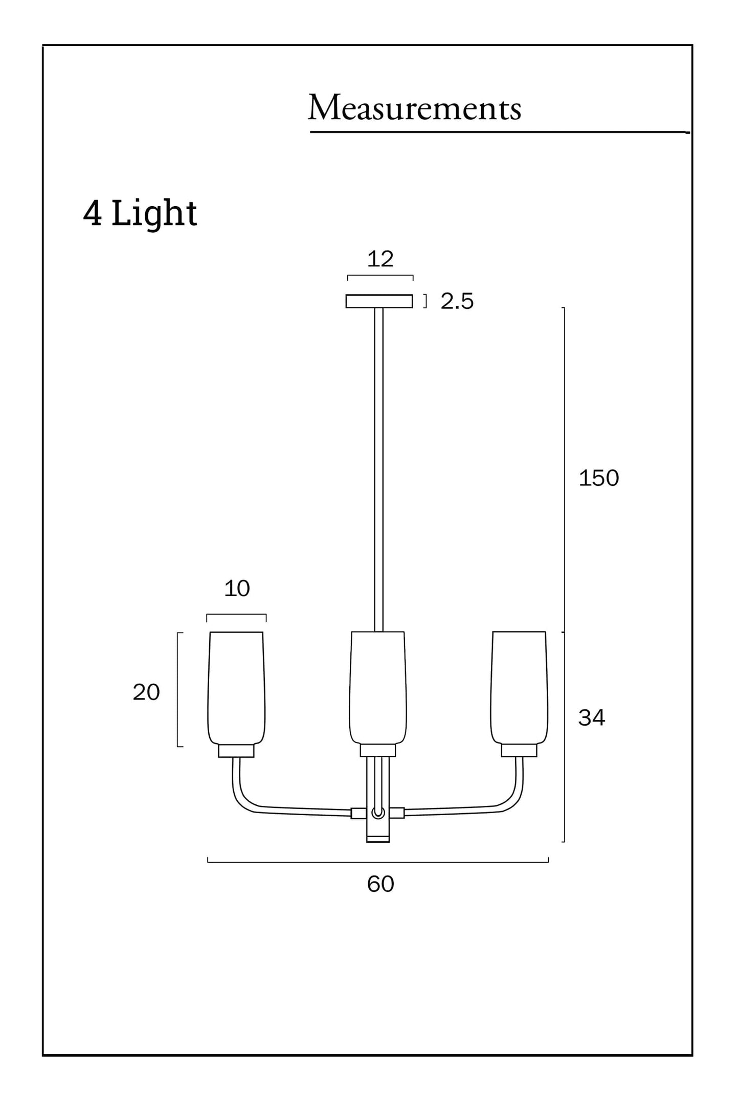 - The 4 light variant has a fixture diameter of 600mm.