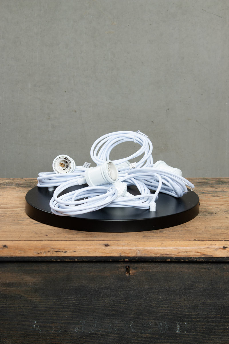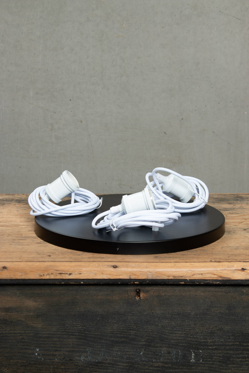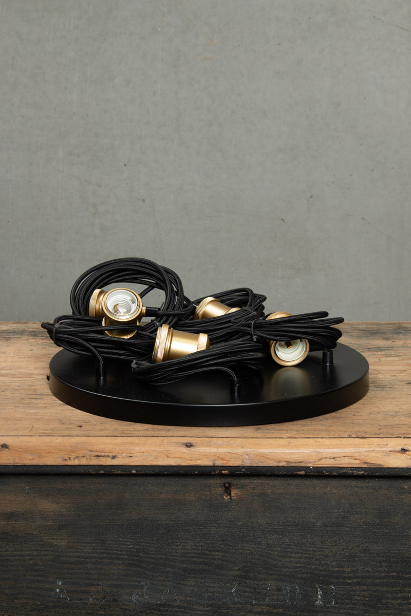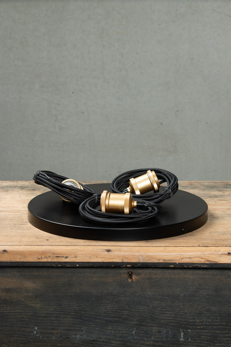 - The metal ceiling rose comes in black finish. The lampholders are available in black, gold/brass or white finish, all featuring cloth cords with a black finish.