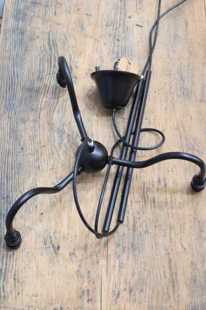 - The steel chandelier is supplied with two poles in the box. Each pole is 400mm in length. During installation, this fitting can be used with no poles (flush mount). 1 pole or 2 poles. This allows drop length choices of 190mm, 590mm or 990mm. These measurements are approx. from the ceiling to the tip of the lamp holders. If you would like drop lengths greater than 990 mm simply contact us to arrange.
