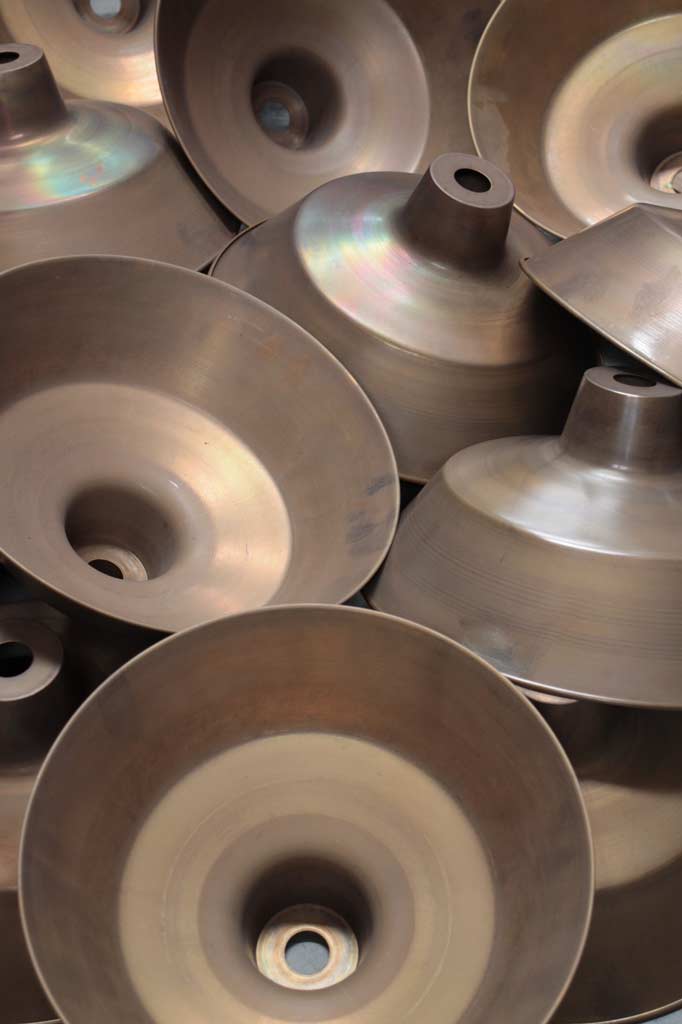 - The Aged Solid Brass/Copper shades have been fired for a deeper aged look. The Bright Solid Brass/Copper shades have been mildly buffed on the outside to give them a brighter finish and then left raw. The inside is cleaned (not buffed) then left raw. The shades are then oil rubbed to preserve the look for longer. Both finishes will continue to patina over time dependent on the environmental conditions they are placed in. The bright brass and bright copper shades will patina at a slower rate because of the oil-rubbed finish.