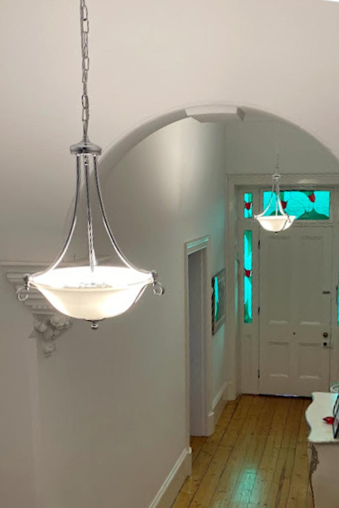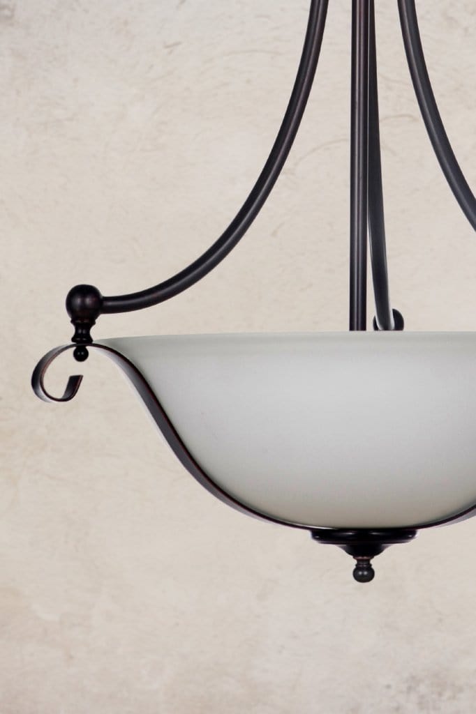 - The frame is mounted from a chain suspension, which can be shortened by electrician at time of install.