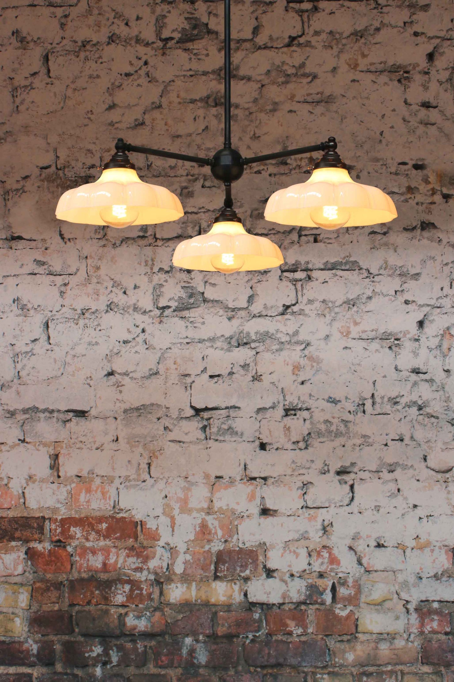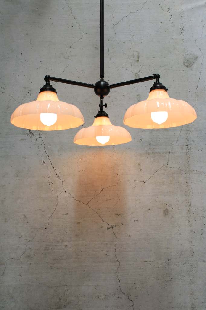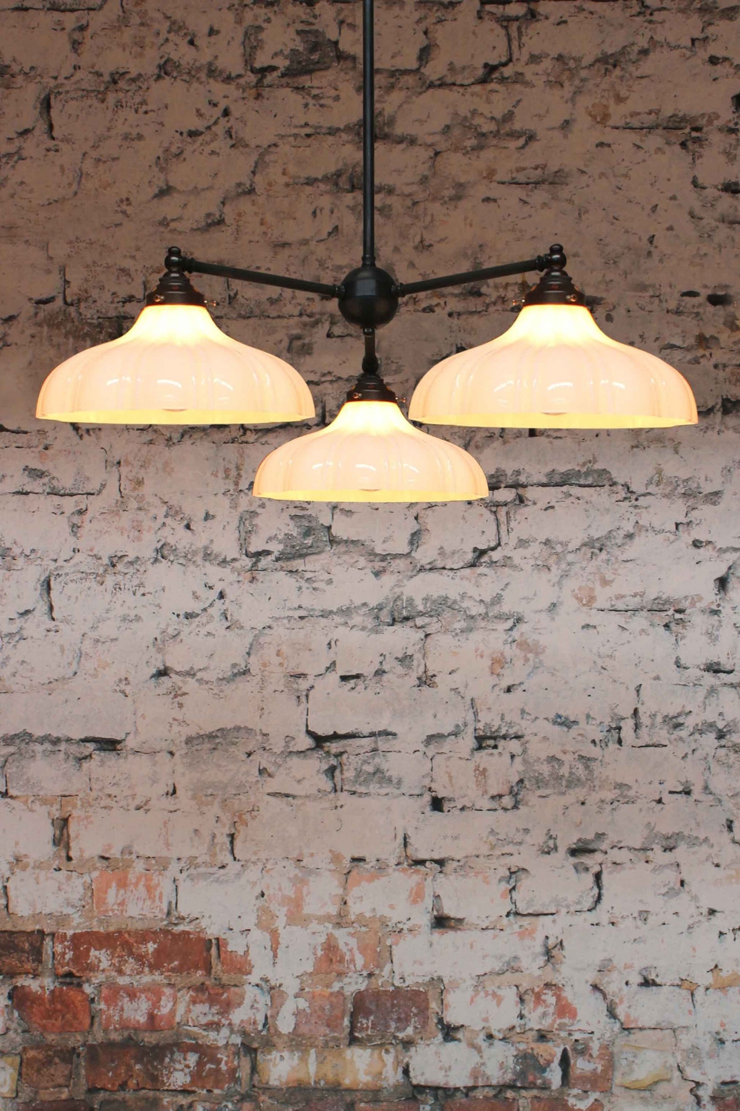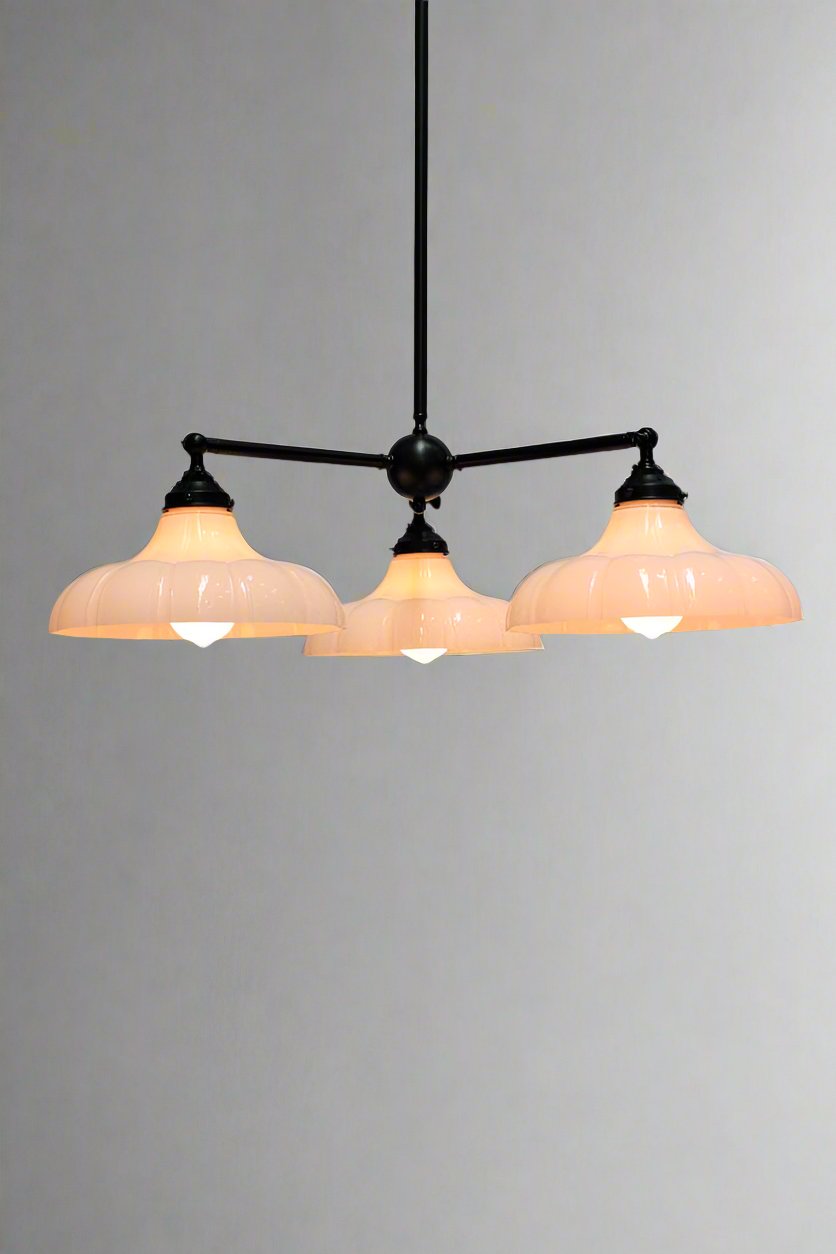 - The three arm steel suspension has straight arms and comes in Black or Gold/Brass finish, or in a five arm frame in black with small shades only.
