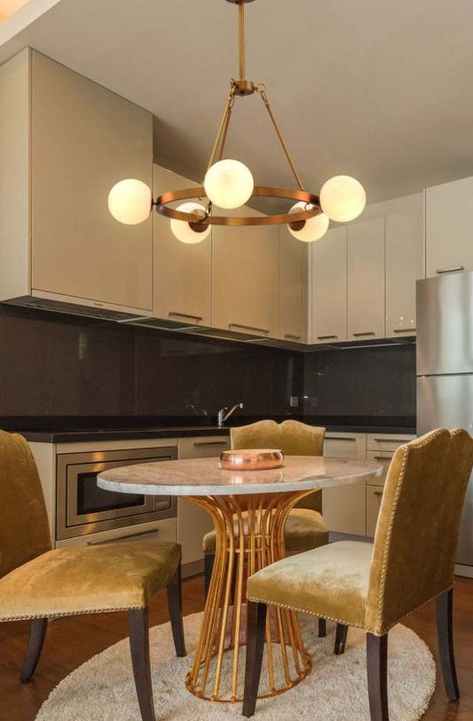 Choosing the right size for your chandelier is an important step in finding the right one. You'll want to measure your room and consider the height of your ceiling when choosing a chandelier, as well as what size will fit best in that space. For example: if you have a large dining room with 8-foot ceilings, it might be best to go with something like our 6-light Chandelier Bonnie Adjustable Multi Light Chandelier because it will fill up more space while still being relatively easy on the eyes.