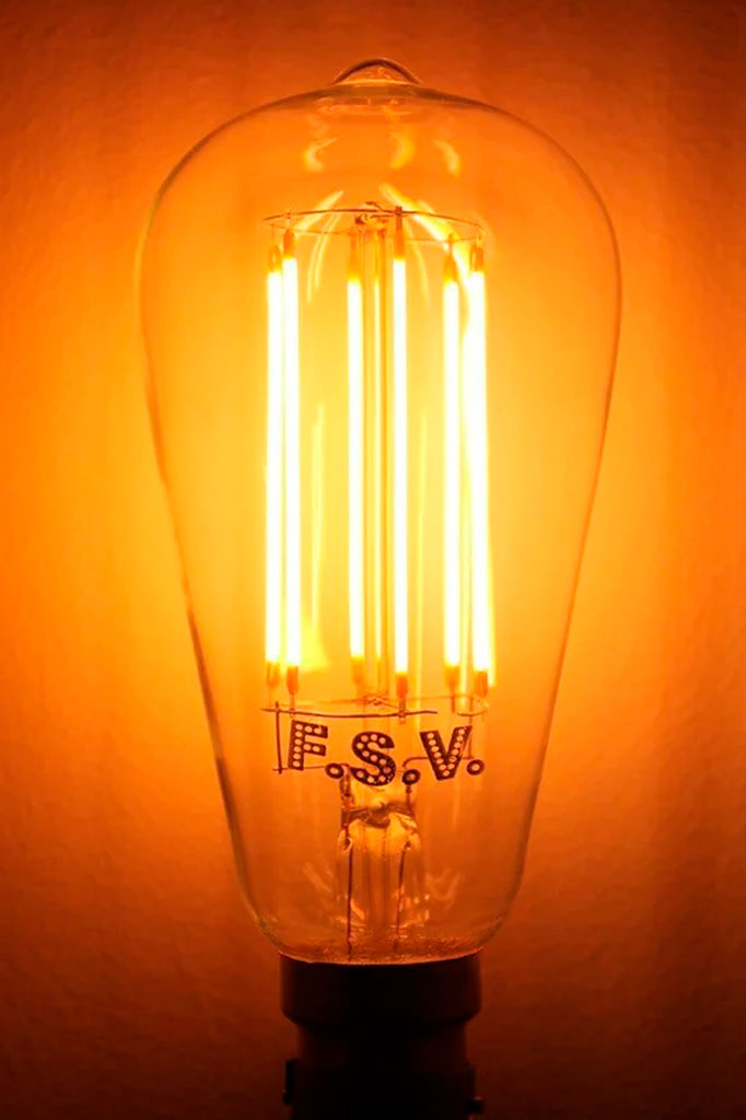 - There are six LED bulbs to choose from: Clear G45 0.5W shatterproof polycarbonate shell (1 filament, 2200K dim, warm light), Clear G45 2W shatterproof polycarbonate shell (4 filament, 2200K warm light), Opal G45 2W shatterproof polycarbonate shell (2700K – for a whiter, brighter appearance), Clear A60 4W (4 filament, 2200K warm light), Clear ST64 6W glass shell (6 filament, 2200K warm light).