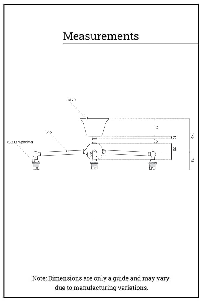 • Requires two or three Australian standard B22 (bayonet) 60W max light bulbs.