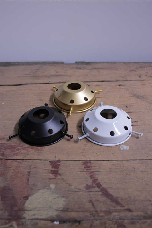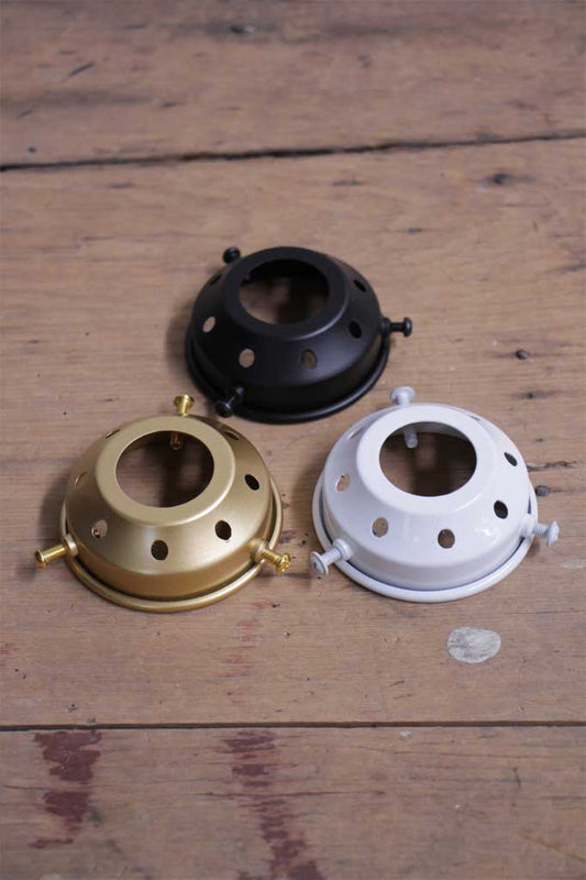 A light shade gallery sits on top of a glass shade, holding it into place with screws that sit under the lip of the shade. These are essential in securely holding a light shade into place and are available in a range of different finishes.