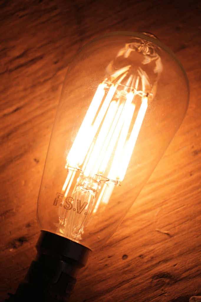 Inside this bulb are four LED filaments, emanating light that imitates the vintage style incandescent Edison filament bulbs. It pairs the aesthetics of a classic teardrop light bulb with cutting-edge LED technology.