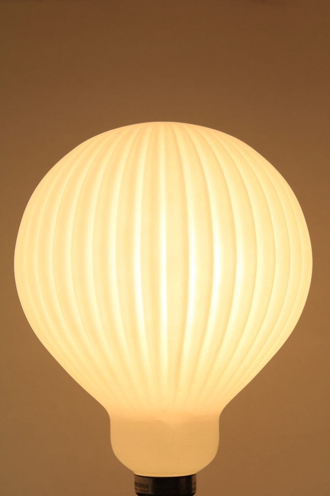 With distinctive waterfall textured design and opal glass, this updated take on the classic round bulb is a functional update to your space. These bulbs produce bright, warm white light suitable for a work or living space. Thanks to LED technology, these bulbs are low wattage and will last an average of 15000 hours. These bulbs would suit any lamp or pendant with an exposed globe.