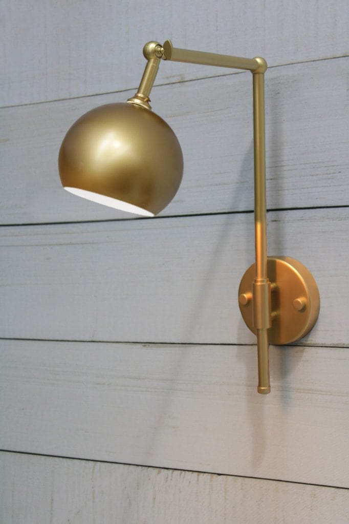 • The wall arm is made of steel and is available in a black or gold/brass.