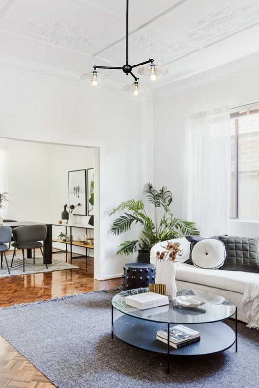 Mid century modern lighting emerged during the mid 20th century. Mid-century modern design is characterised by an understanding of the importance of form and function; sleek, geometric lines; minimalism in terms of ornamentation; and the juxtaposition of contrasting tones and materials. There was also a diversity in terms of construction materials from wood, glass and acrylic used to create pendant, wall and modern hanging lights.