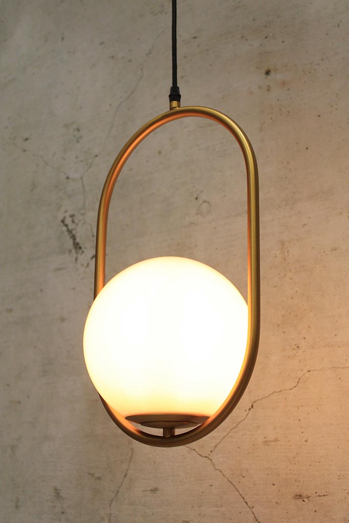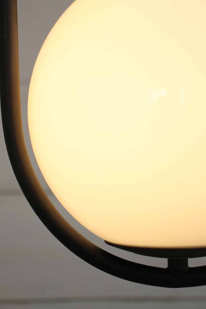 Adorn your space with the sophisticated style of the Bonnie Glass Ball Pendant Light. Suspended by a rounded frame that comes in two finishes, the design showcases a 360 degree view of its opal glass shade. The organic minimalist form allows for easy styling in retro and urban style interiors and is ideal for eateries, bedside lighting and dining tables.