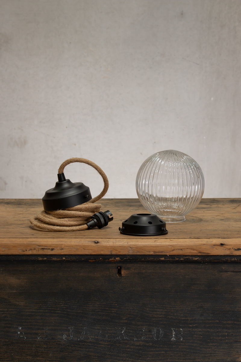 - The shade is paired with a selection of four cord styles. The round braided cord comes in black, jute, gold/brass or white options.