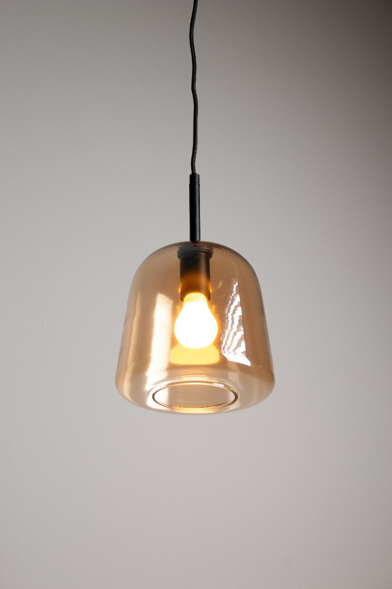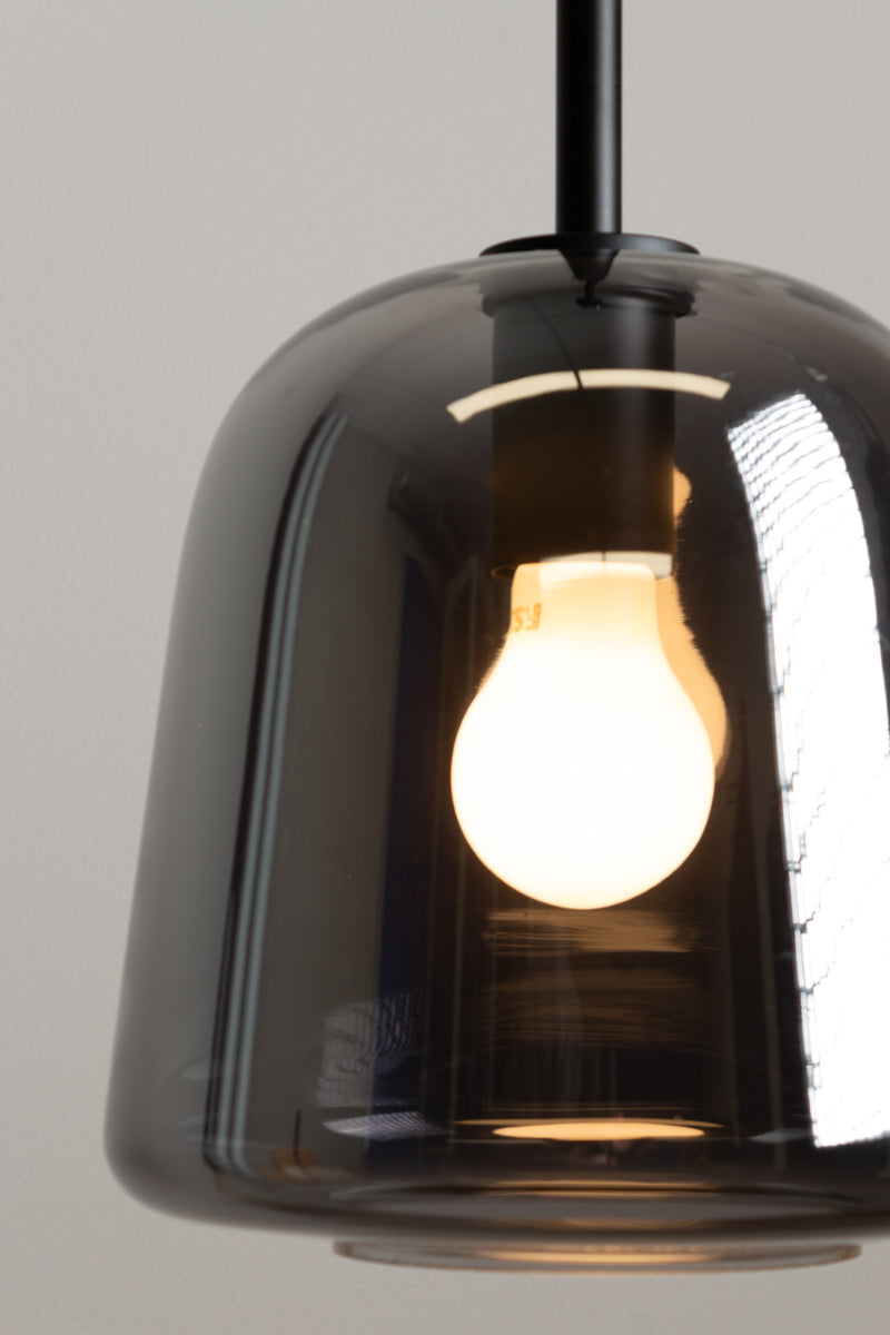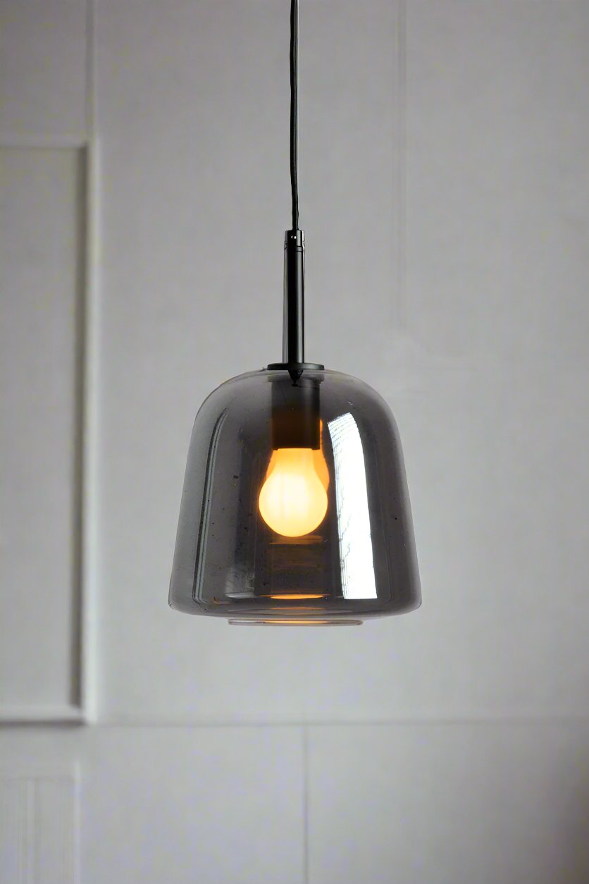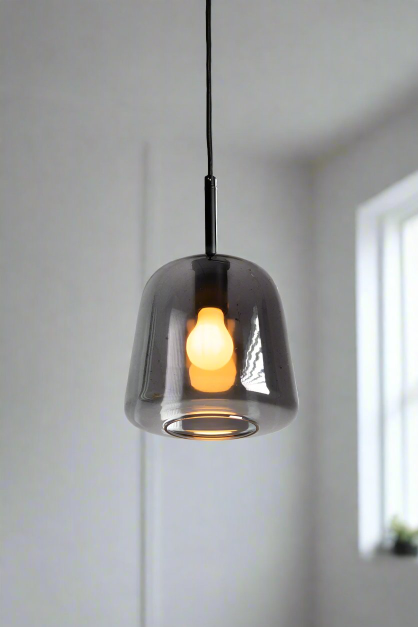 - This pendant light is available in three glass finishes: clear, amber or smoked grey.