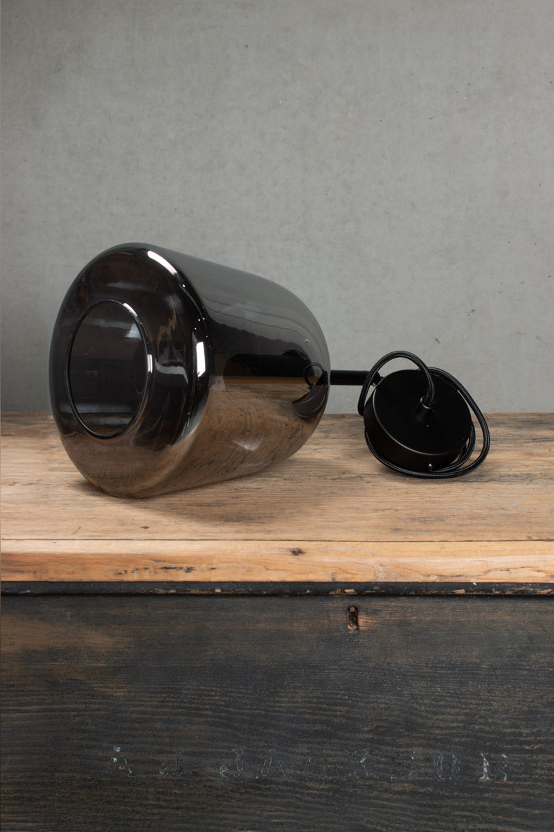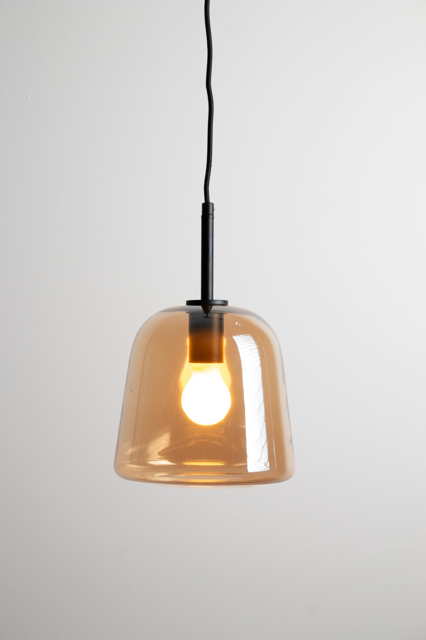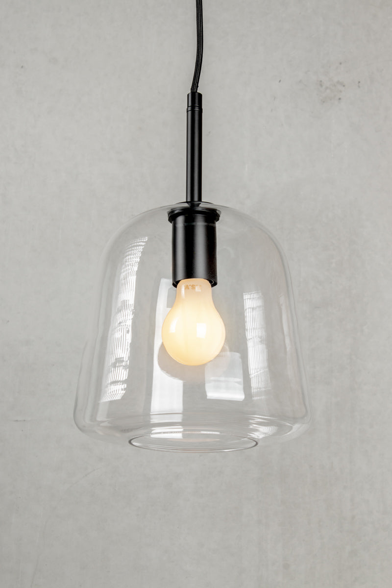 - This pendant light is available in three glass finishes: clear, amber or smoked grey.
