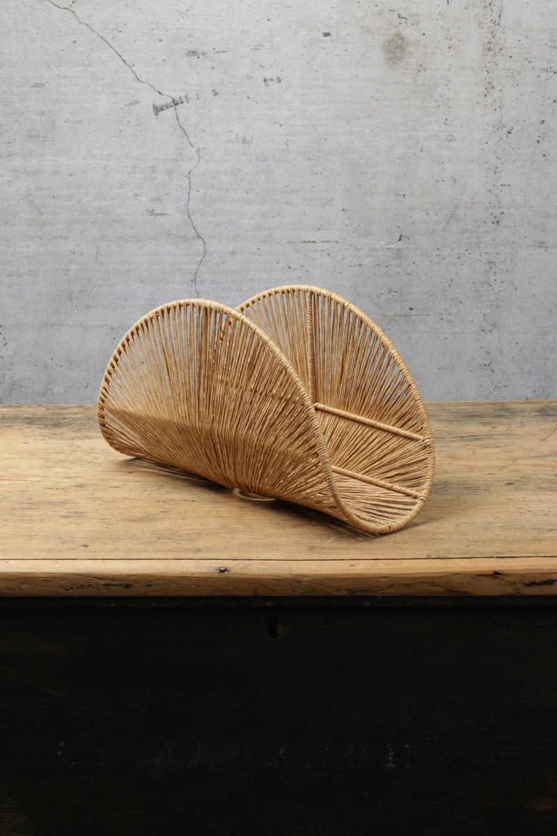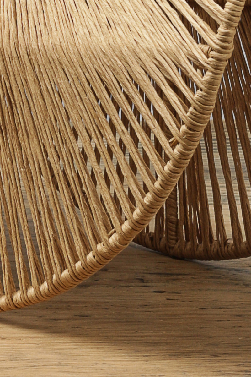 - The shade is handcrafted with natural fibres twisted into rope string and woven around its unique frame.
