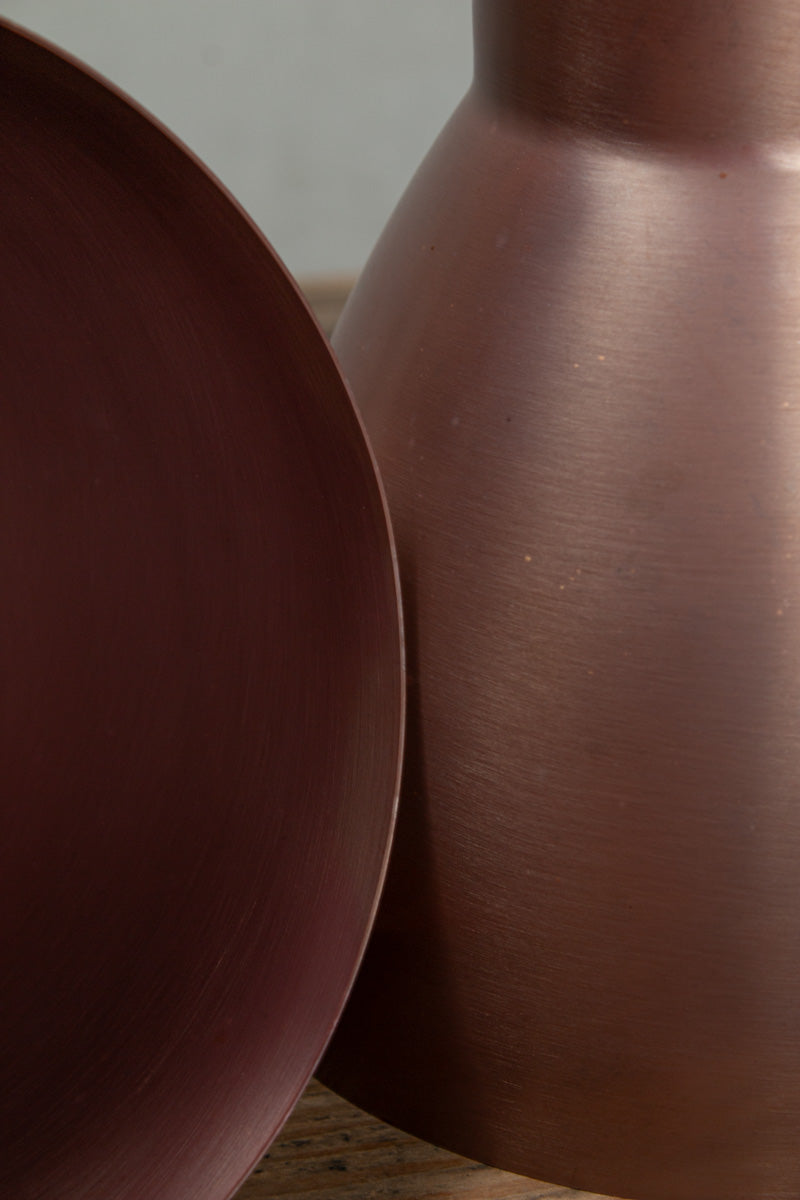 - The Aged Solid Copper shades are made from solid copper. It has been fired for an aged look finish. These shades have a natural oxidised finish that continues to develop over time. The rustic finish is rough showcases the natural aged beauty of copper. The inside is cleaned (not buffed) and then left raw. This finish will continue to patina over time dependant on the environmental conditions they are placed in.