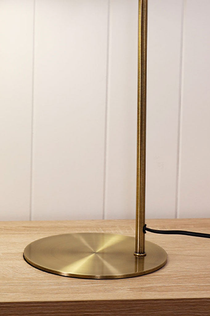 The Clarkson Table Lamp strikes the perfect balance between aesthetic appeal and functionality. Its classic antique brass finish and versatile design bring an quintessential touch to any desk or bedroom side table. With a convenient cord switch and well-proportioned dimensions, this lamp offers both style and purposeful lighting. Transform your space with the timeless masterpiece of the Clarkson Table Lamp.