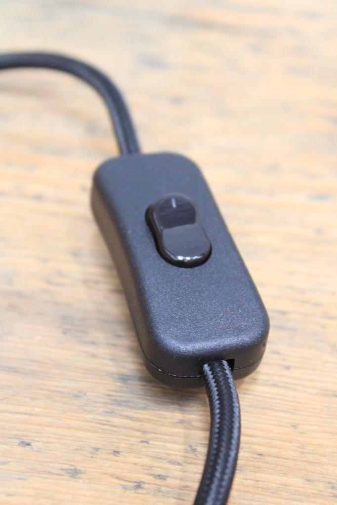 - The table lamp includes a black cloth cord with inline switch.