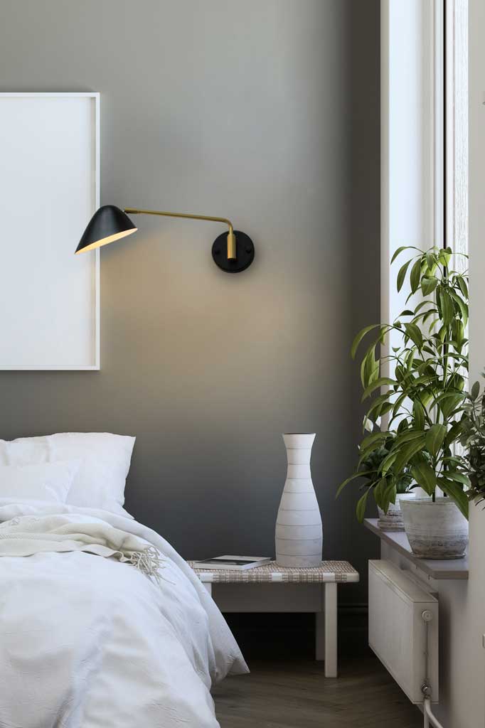 The Dallas Wall Light blends simple and ergonomic design with functionalism and industrial aesthetics. Simple and sturdy, its stylish steel design features a distinguishable black shade and brass arm. The wall light offers a range of movements with its tiltable shade and swivel arm that swings left and right on its wall sconce. Either as single accent or multiples, it easily adds a refined touch to your bedside, home office or breakfast nook.