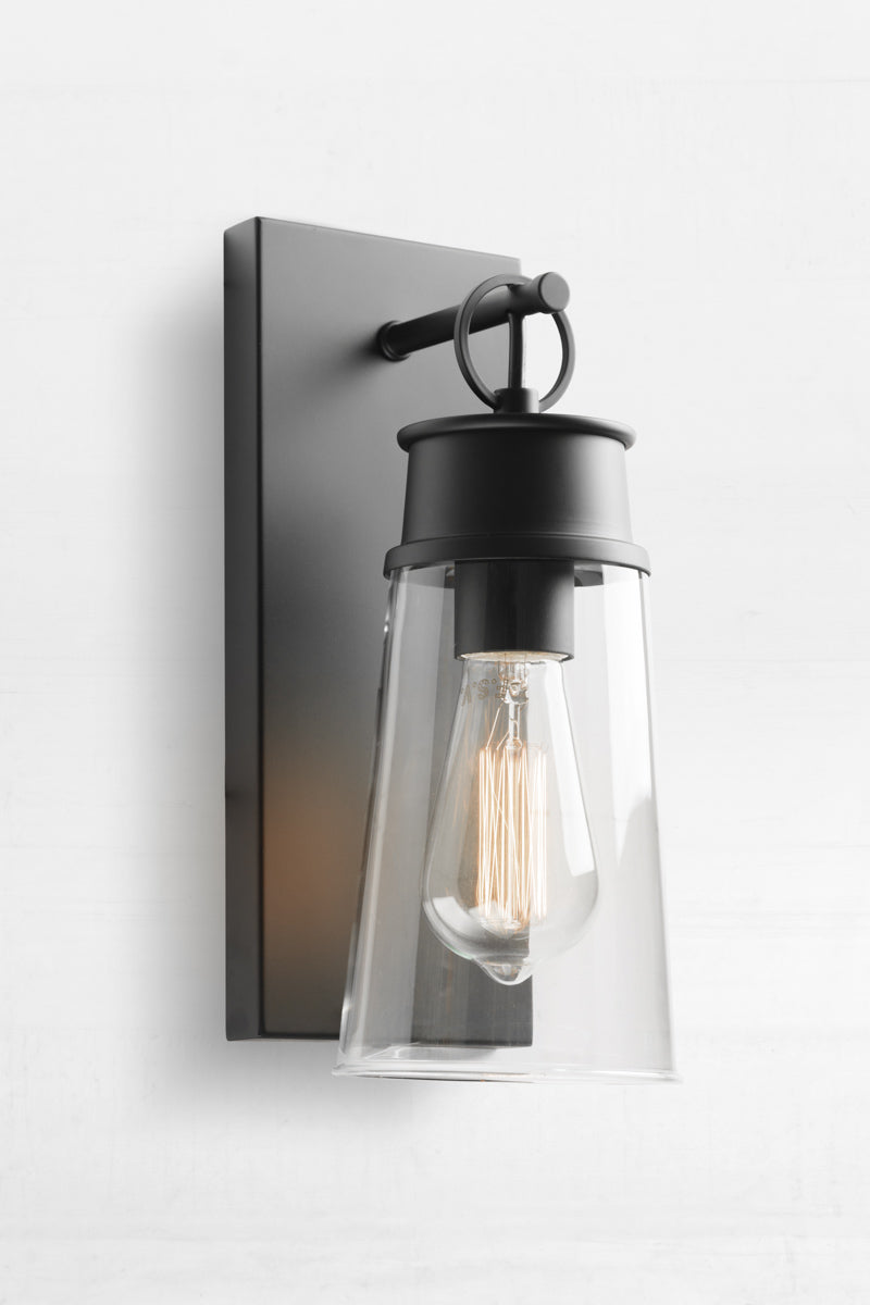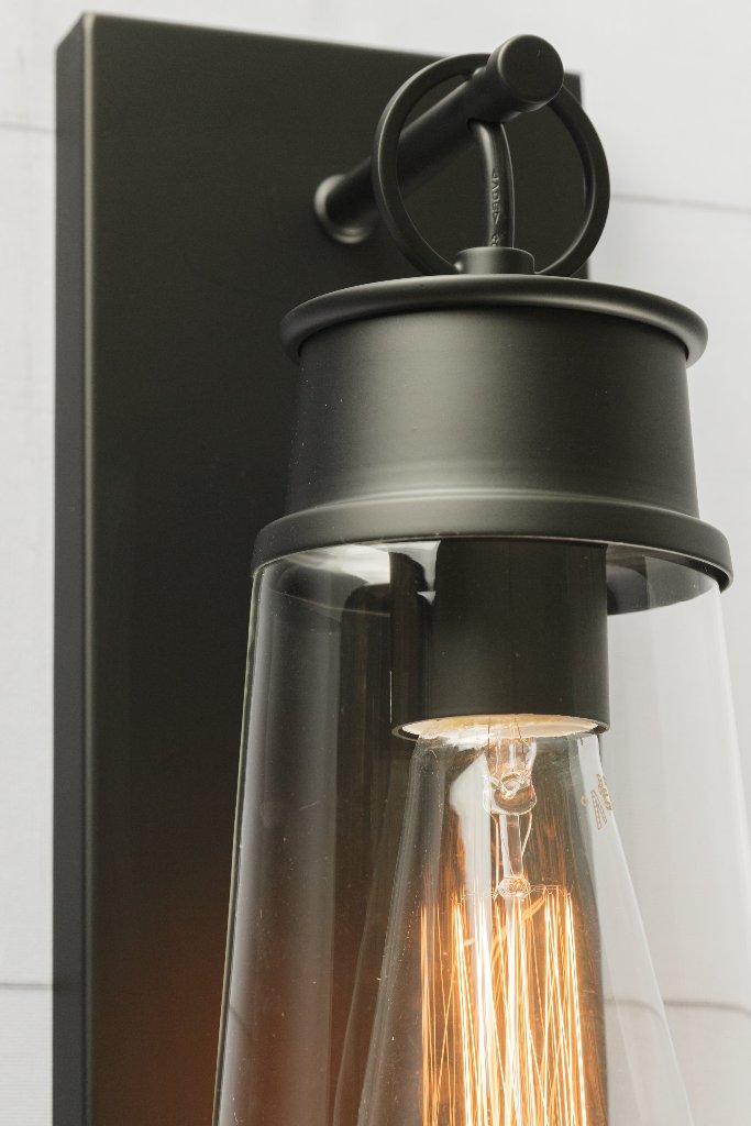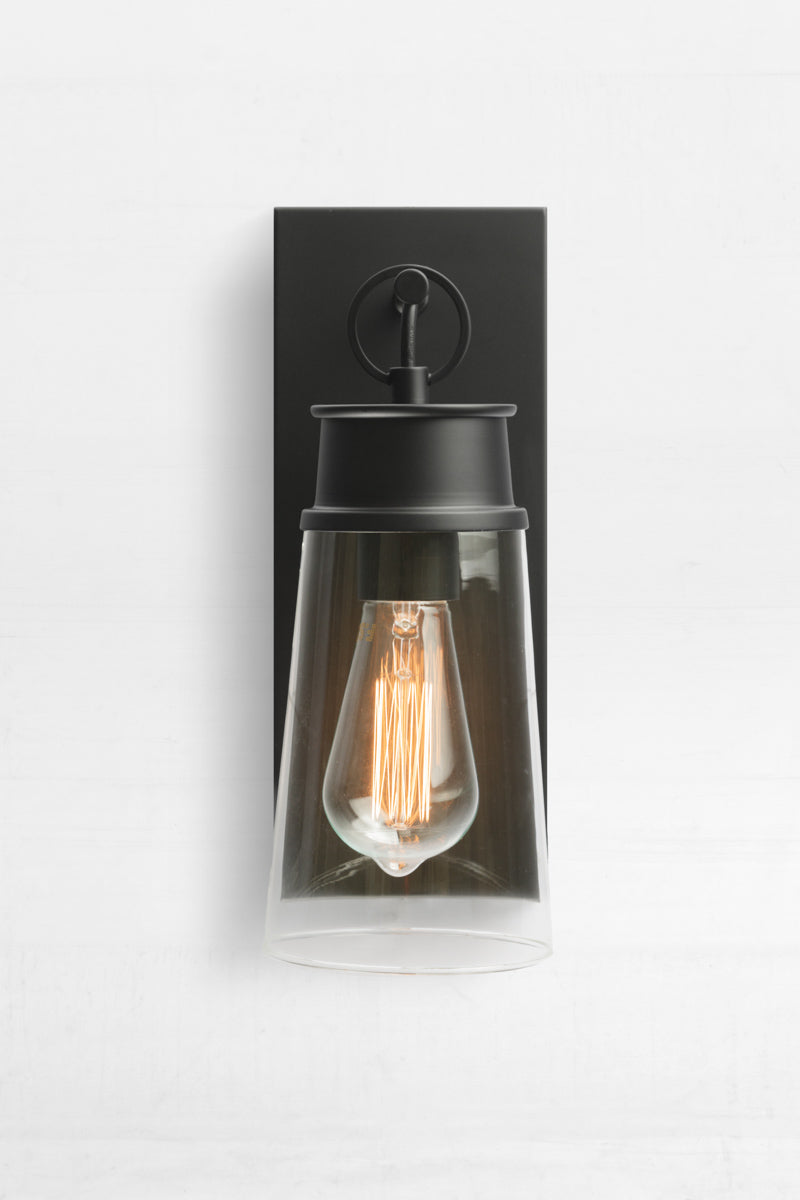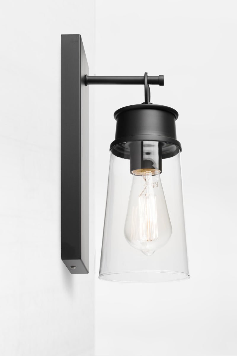 The Atlanta Glass Wall Light features a clear glass shade and distinctive tapered design. This matt black steel light adds a timeless touch to traditional and contemporary interiors. Versatile and suitable choice for a range of lighting needs, its ideal for bedsides, kitchens or livingroom area use.