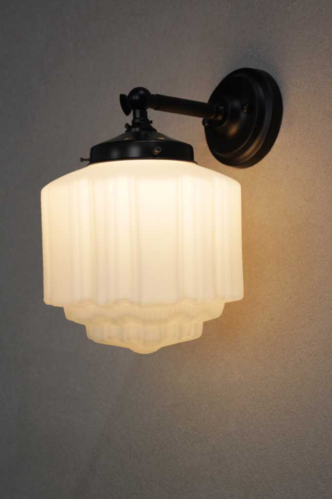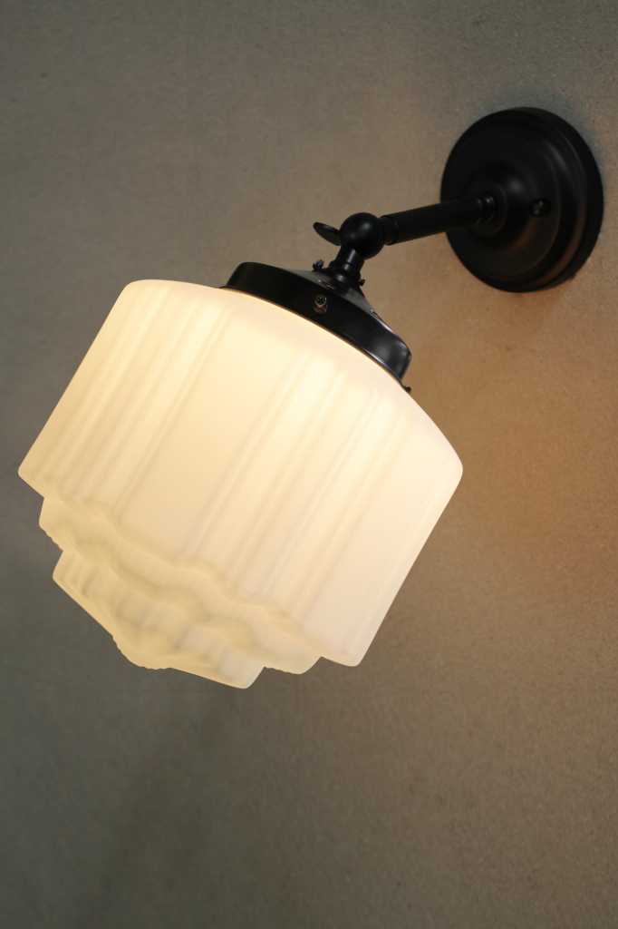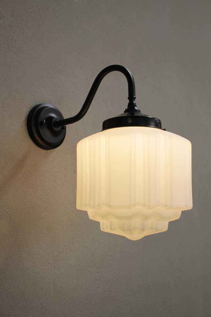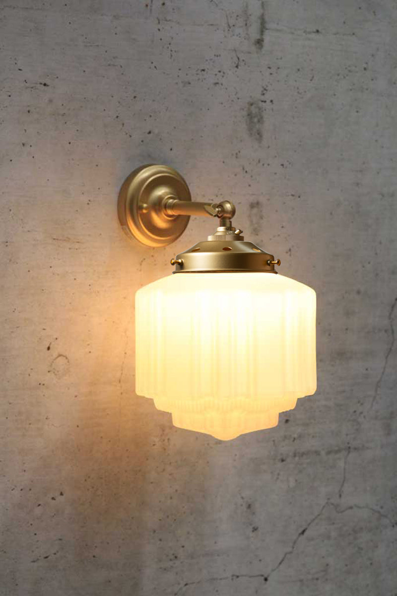 - The glass shade is fitted to the wall sconce with a gallery. All wall sconces are paired with a matching gallery.