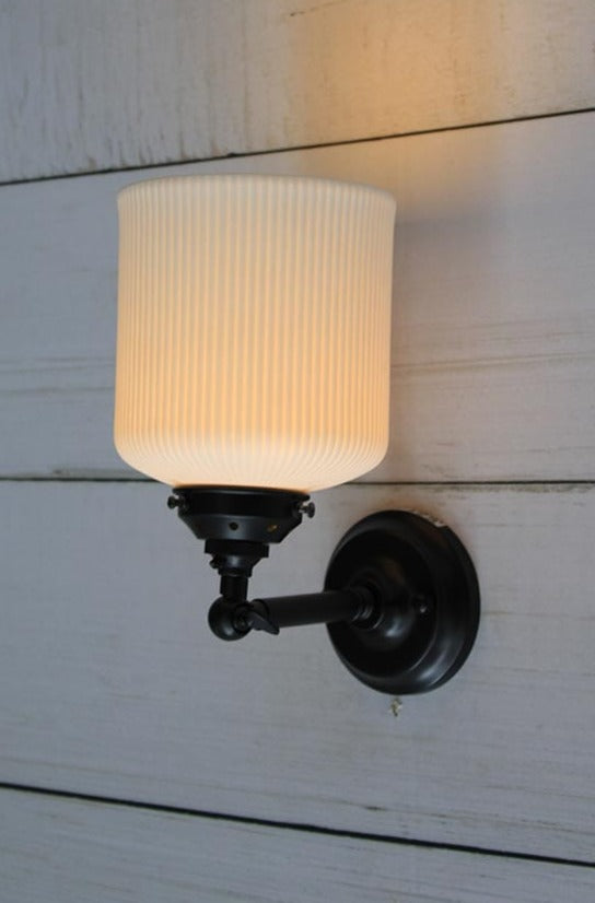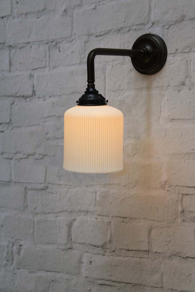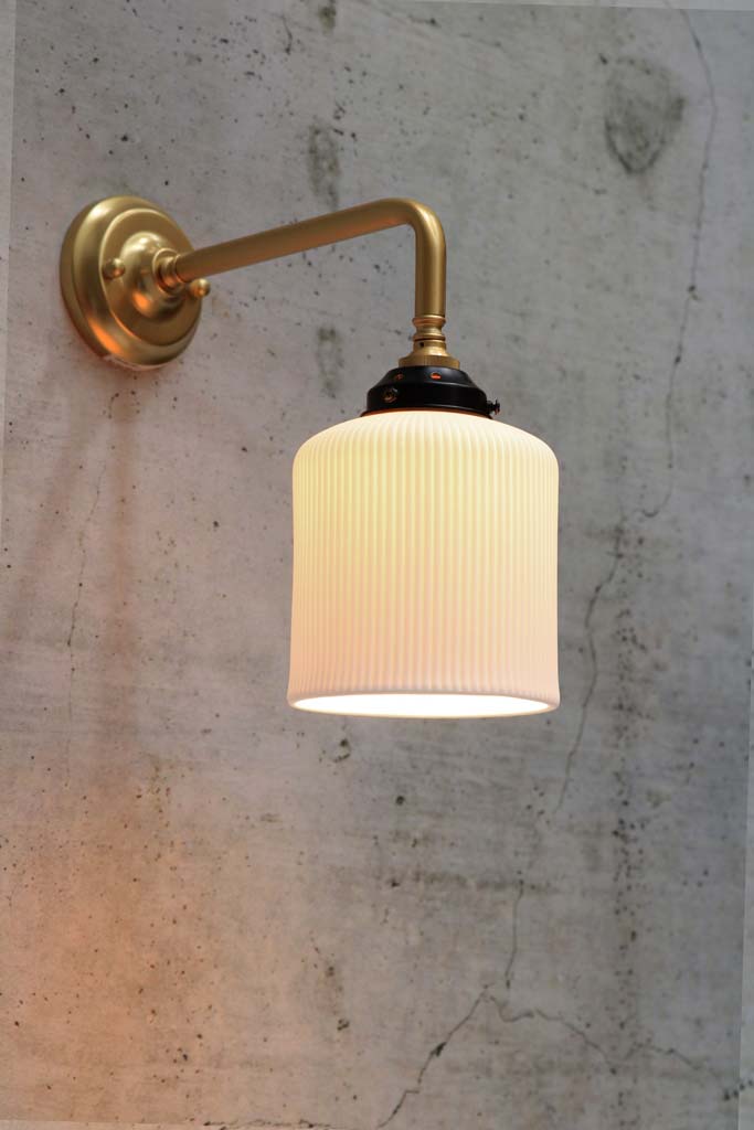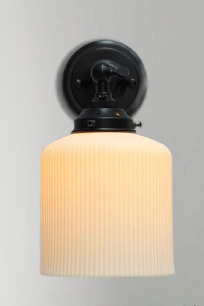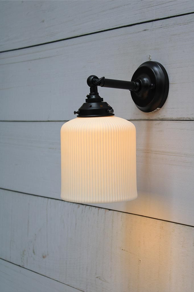 • The ceramic shade is fitted to the wall sconce with a gallery. All wall sconces are paired with a matching gallery, except for the gold/brass steel sconce which is paired with a black gallery.