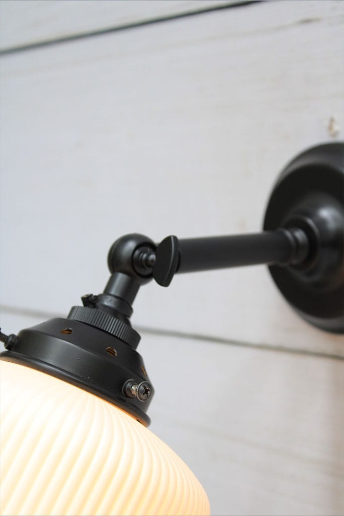 • The straight arm wall sconces feature a 45° swivel lampholder to adjust upwards and downwards. To adjust the lampholder the wing nut screw needs to be loosened slightly. The knuckle is not to be adjusted with the wing nut still tightened in place.