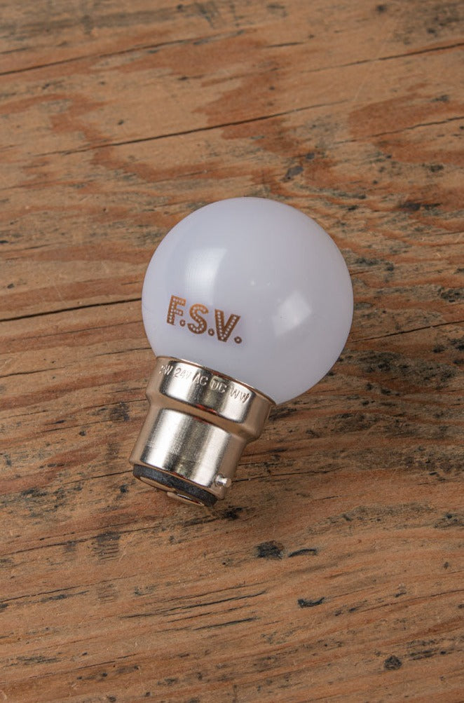 2W B22 24V AC/DC LED G45 Round 2700K Opal Bulb Shatterproof