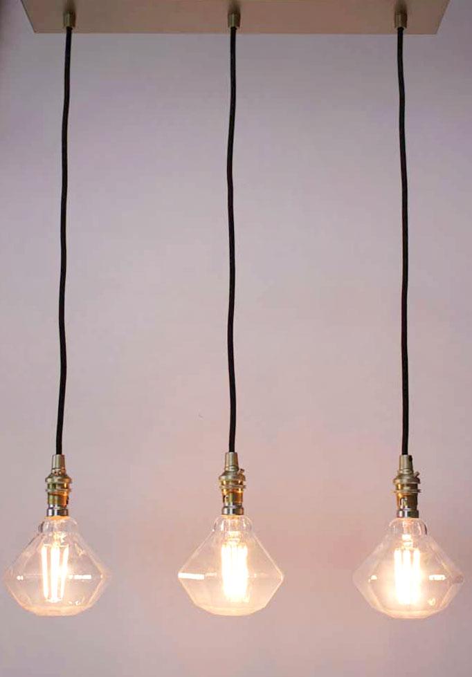 This multi light pendant has a classic simplicity that makes it very versatile. Its pendant cords come in a selection of styles suspended on a long or short ceiling plate to offer varying looks and configurations. Pair with a designer light bulb to create a stylish bare bulb pendant light or add a shade to create your own bespoke pendant. Available only at Fat Shack Vintage!