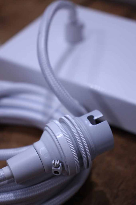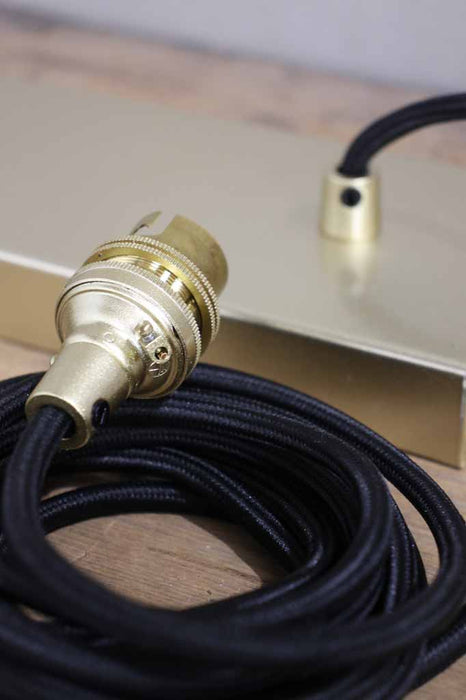 • The braided round cords come in black, white or gold/brass options. The black and white cord options come with a matching ceiling plate and lampholders. The gold/brass option includes black cords with gold/brass lampholders and gold/brass ceiling plate.