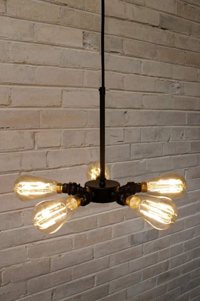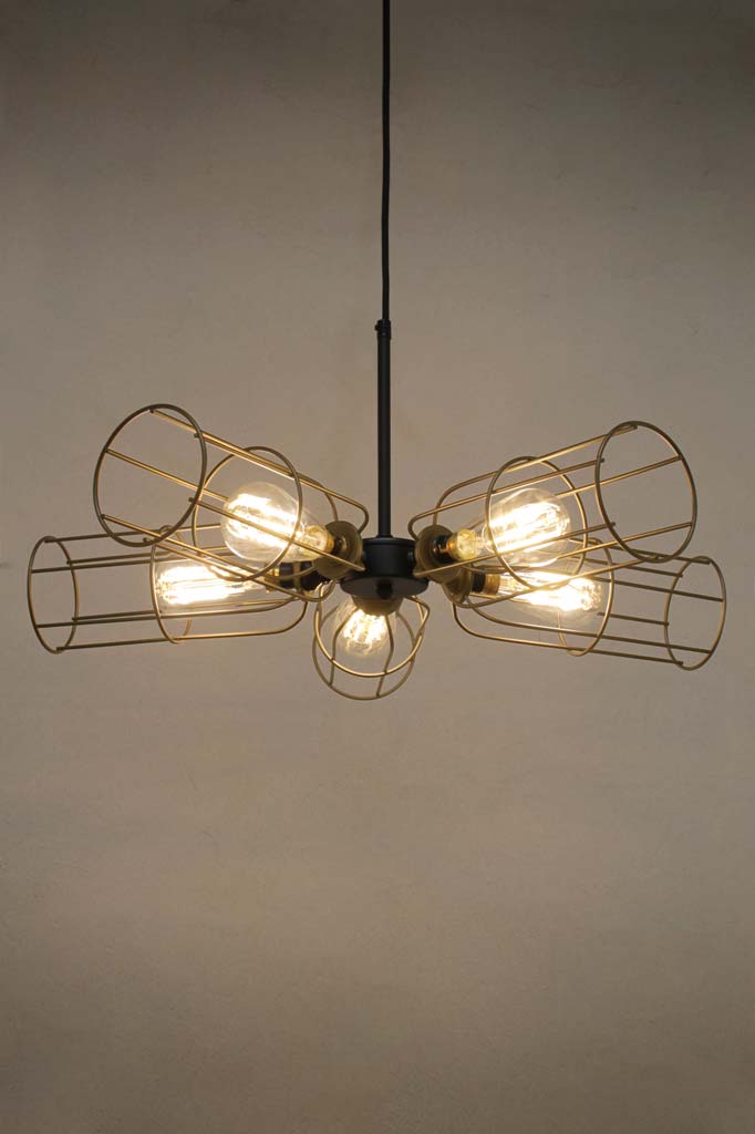 This 5 Light Lamp Holder Pendant will add a dynamic design statement to any room décor. This pendant light can be hung as a bare bulb pendant or looks even more striking with the addition of the long industrial cages. Popular uses include accenting above dining tables and counter tops as kitchen lighting or as a focal point in restaurants or cafes.