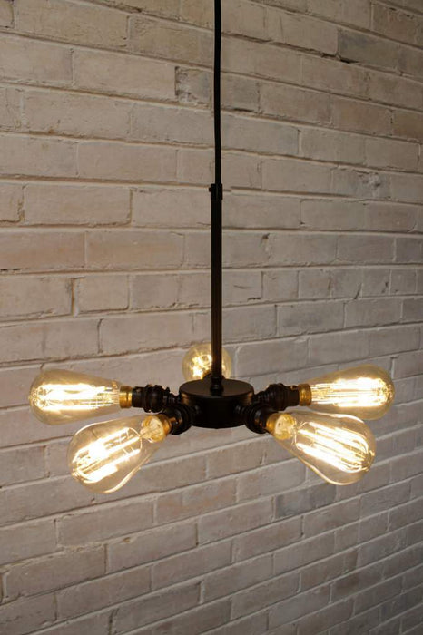 - Features five lamp holders supported on a short stem and plastic pendant cord.