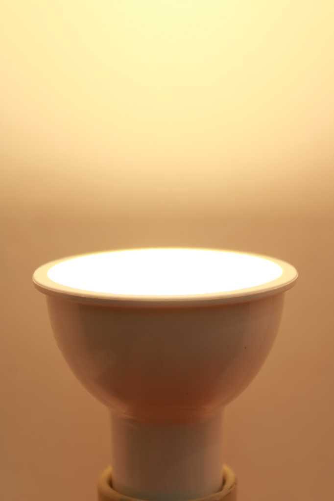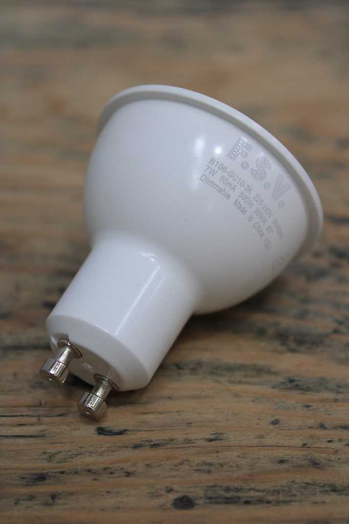 This 7W LED GU10 bulb offers a dimmable energy saving update for a range of compatible fittings. Retrofit for spotlights and downlights, its white acrylic body has a smooth finish and easily complements any lighting style. The bulb produces a warm white illumination suited for a range of living spaces including kitchen lighting, bedroom lighting and living room lighting.