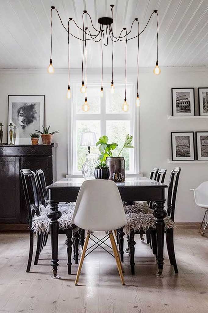 - As the braided round or twisted cords are adjustable, the nine pendants on this unique light have the advantage of fitting into just about any interior.