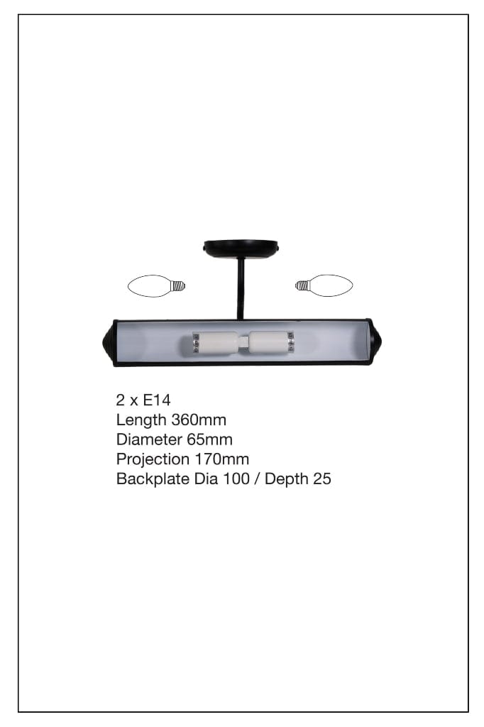 • The picture light requires two candle or tubular shaped screw in (E14) bulbs. 40W max.