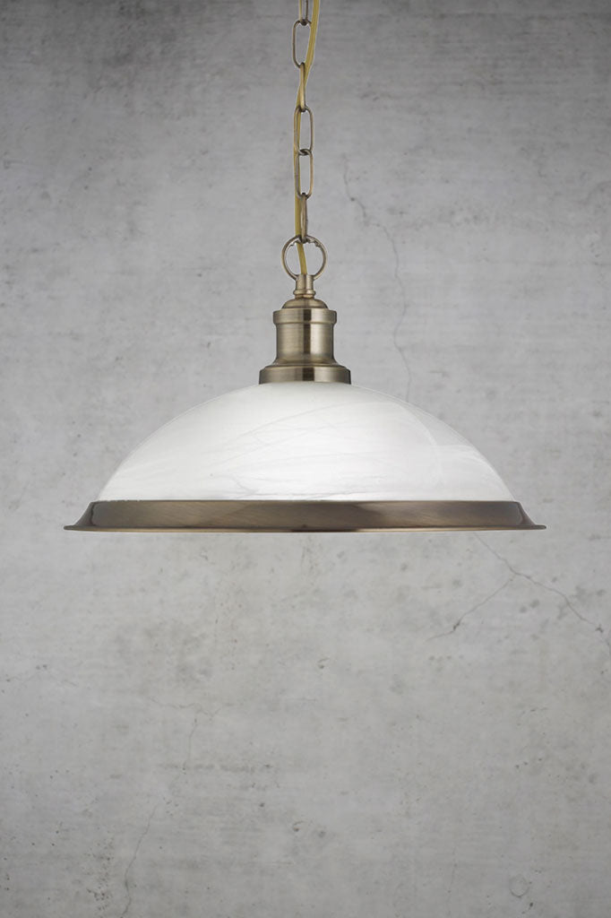 - Suitable for both residential and commercial applications this pendant is comprised of an opaque alabaster glass shades suspended by a metal bar with chain suspension and a rectangular ceiling rose.