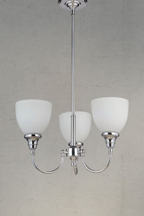 The Albany Downright Glass adds classical elegance to your space. Curved metal arms in three finishes hold the frosted glass shades in either upright or downward facing options. Both are supported by a central suspension rod. This chandelier is available in two sizes and styles, and adds a traditional aesthetic to your dining room, bedroom or lounge. Commercially, this light would suit an elegant bridal salon, Hamptons style lodge or sophisticated tearoom.